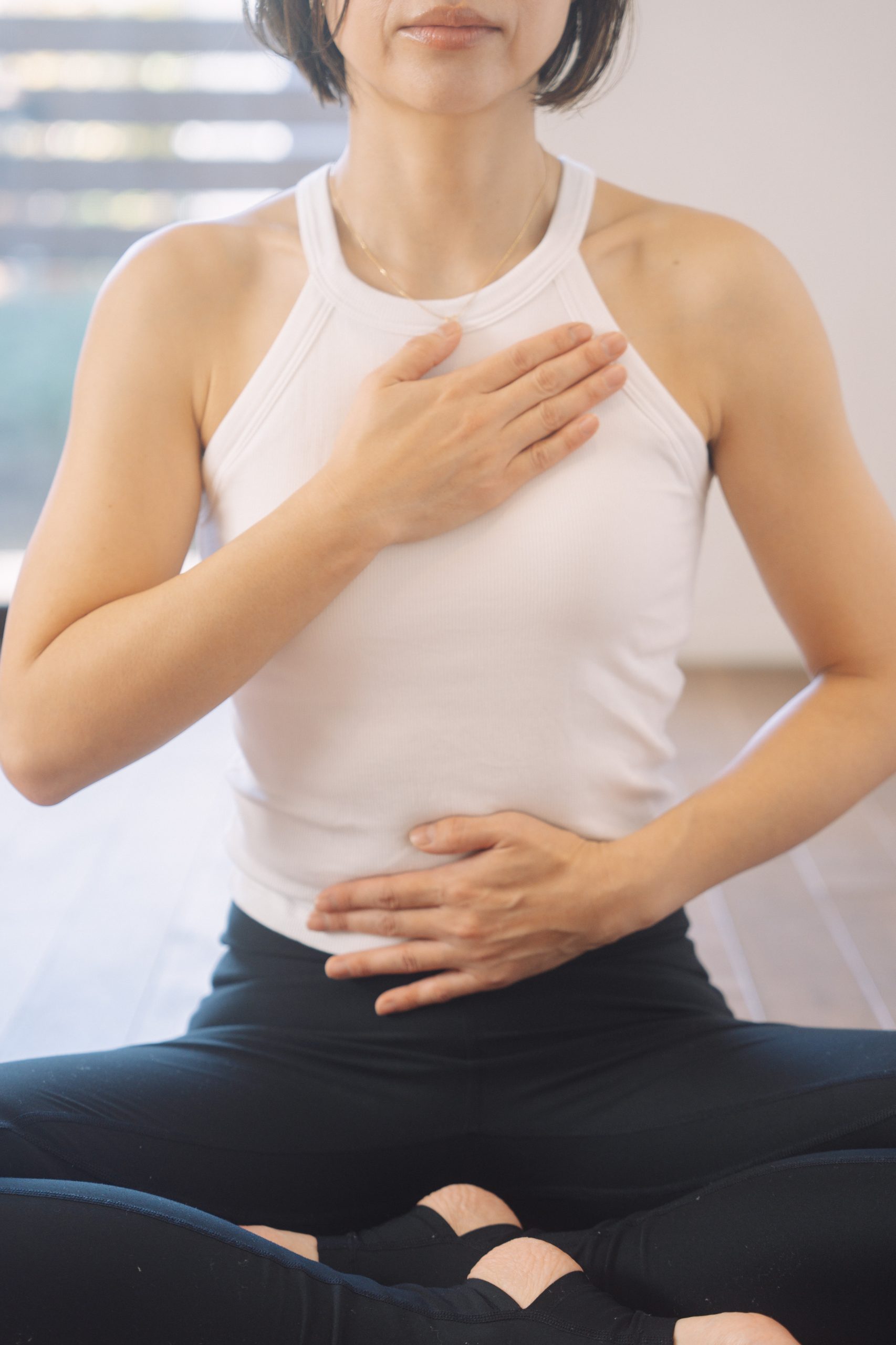 一番興味を持ったのが、言わずもがな『産後ヨガ』。自分のためのヨガだなと思うくらい共感しまくりました。その中で出てきたのが『骨盤底筋』。やっとここで出会うわけです。横隔膜なんて言葉も合わせて出てきて、横隔膜を動かす呼吸を初めて体験したとき、あまりにも今までの呼吸が浅かったことに気づき、横隔膜が“本当に動く感覚”を味わった瞬間、なんと…ちょっと気持ち悪くなってしまったんです。笑